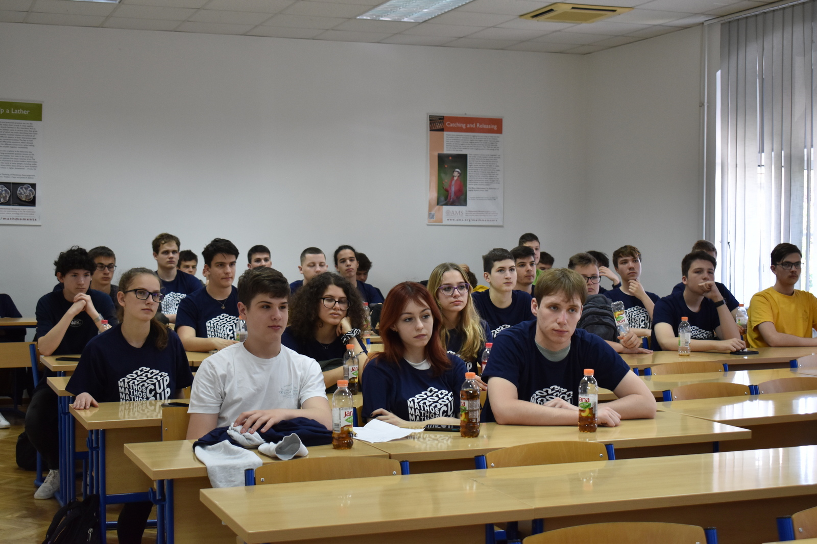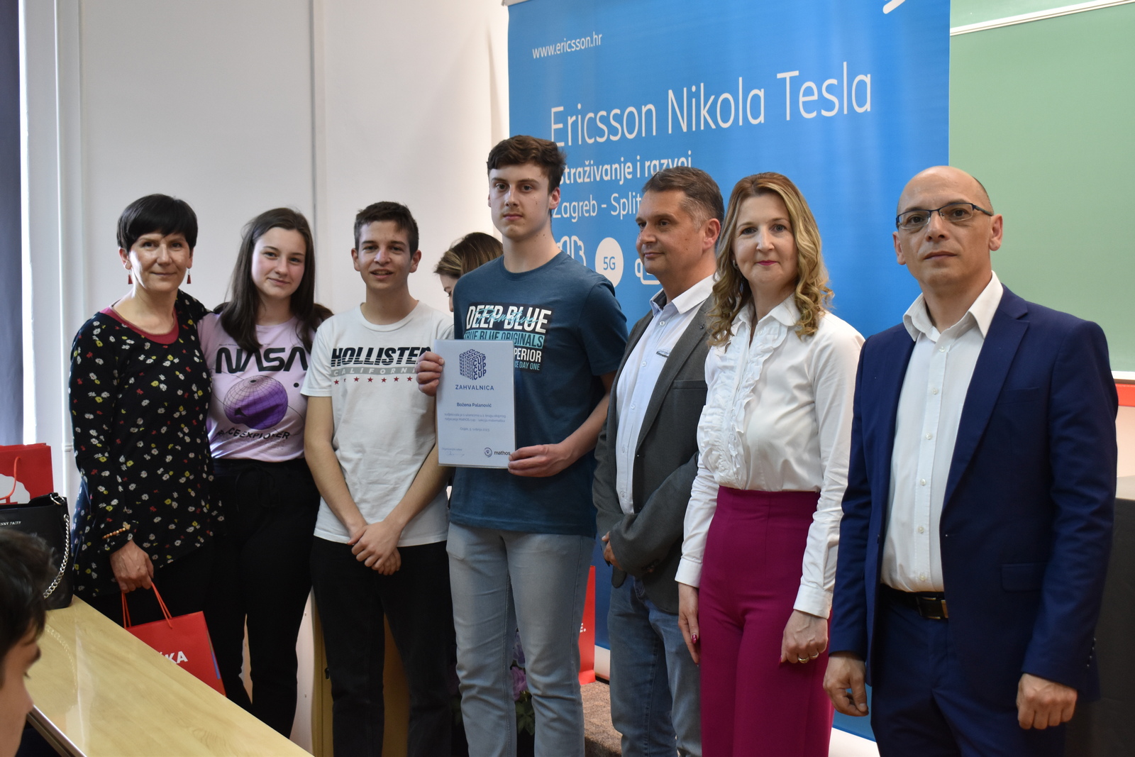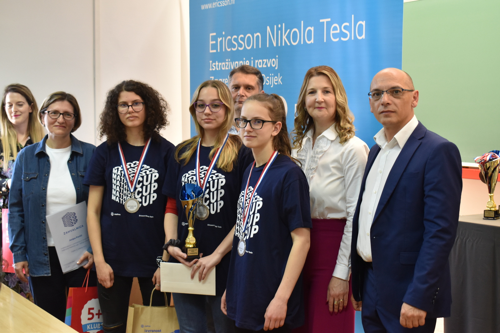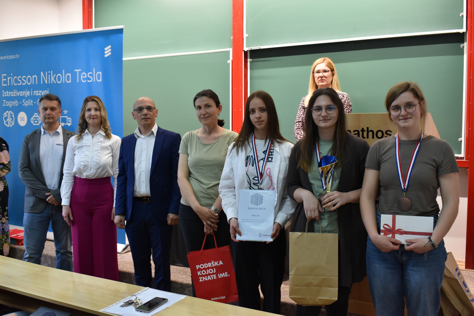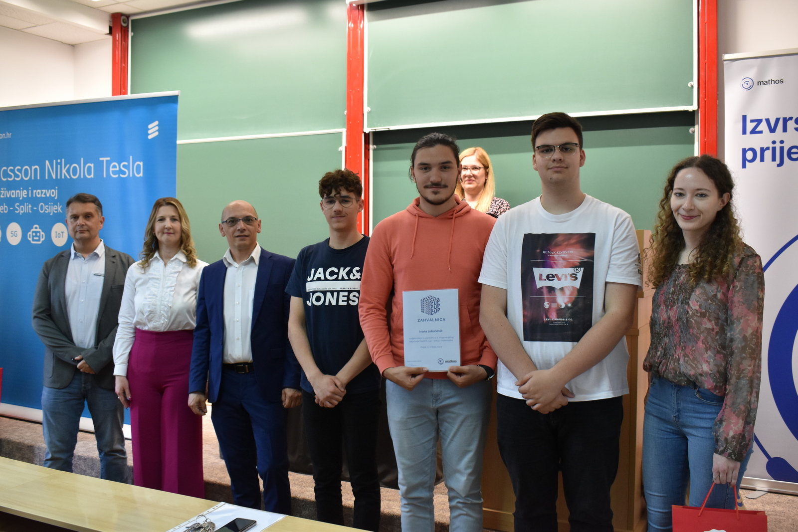 07/05/2023 MathOS cup 2023 U petak 5. svibnja 2023. održan je finalni krug timskog natjecanja MathOS Cup – sekcija matematika. Od 675 učenika iz 33 škole iz cijele Hrvatske koji su sudjelovali u 1. krugu natjecanja, u finalni krug pozvano je po 7 najboljih timova iz svakog razreda. U 1. razredu pobjedu je odnio tim „ez“ iz III. gimnazije Osijek, drugo mjesto pripalo je timu „Ked“ iz Gimnazije Sesvete dok je treće mjesto zauzeo tim „GIMNACK1F“ iz Gimnazije Josipa Slavenskog Čakovec. U ovoj kategoriji sudjelovali su još i timovi „Prazan skup“ i „Dva i po“ iz III. gimnazije Osijek, „BOM“ iz X. gimnazije Ivan Supek Zagreb te „Vito^2“ iz Gimnazije Pula. U 2. razredu zlatni tim je „Dingači“ iz Prve gimnazije Varaždin, srebro su osvojili „GORMITI“ iz Gimnazije Petra Preradovića Virovitica, dok su brončani „BETE“ iz Tehničke škole Karlovac. U ovoj kategoriji sudjelovali su još i timovi „pola od nule“ iz Srednje škole Zlatar, „VRHOVNI G“ iz Gimnazije Matije Antuna Reljkovića Vinkovci te „Hexagoni“ iz X. gimnazije Ivan Supek Zagreb. Pobjednički tim u 3. razredu je „3M“ iz Srednje škole Zlatar, drugo mjesto pripalo je timu „Studenci“ iz Gimnazije Pula, a na trećem mjestu je tim „Matko“ iz Gimnazije Sesvete. Sudjelovali su i timovi „Gotham“ iz Gimnazije dr. Mate Ujevića u Imotskom, „Doktori“ iz Gimnazije Matije Antuna Reljkovića Vinkovci, „GJS-VLV“ iz Gimnazije Josipa Slavenskog Čakovec te „AlletuN“ iz III. gimnazije Osijek. U 4. razredu zlatni tim je „ZIHOS“ iz III. gimnazije Osijek, srebrni su „Tafroamerikanci“ iz Gimnazije Pula, a brončani „Snjeguljice“ iz Srednje škola Zlatar. Sudjelovali su i timovi „Kolege“ iz X. gimnazije Ivan Supek, „IT Klub Božo Lagan“ iz XIII. Gimnazije Zagreb, „TROUGAO“ iz Gimnazije Josipa Slavenskog Čakovec te „SMEŠ“ iz Gimnazije Petra Preradovića Virovitica. Zahvaljujemo se ovogodišnjem sponzoru MathOS Cup-a Ericsson Nikola Tesla te čestitamo svim sudionicima i mentorima!