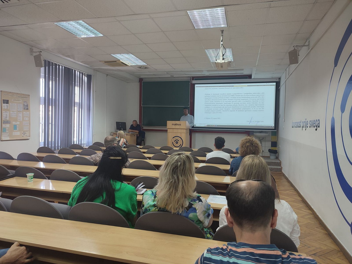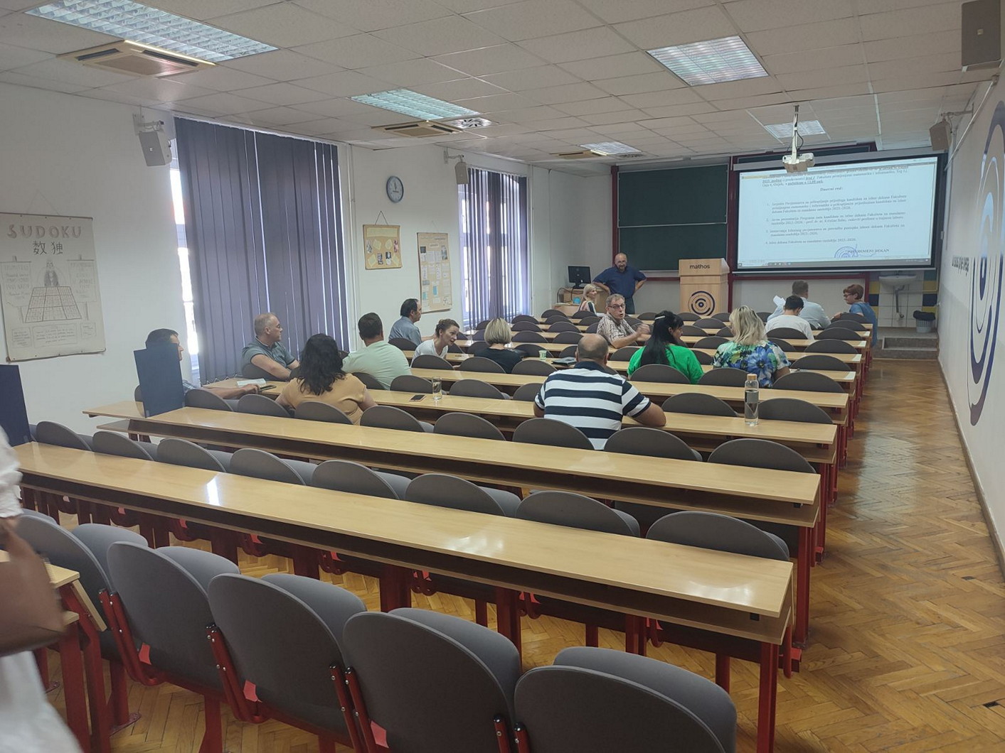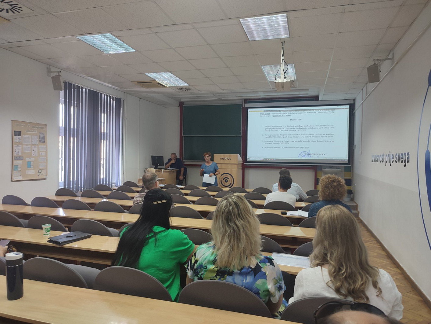 08/09/2023 prof. dr. sc. Kristian Sabo – novi dekan našeg Fakulteta Izborna sjednica Privremenog fakultetskog vijeća Fakulteta primijenjene matematike i informatike održana je 8. rujna 2023. godine s početkom u 12h. Sjednicu je vodila prof. dr. sc. Mirta Benšić. Nakon izvješća Povjerenstva za prikupljanje prijedloga kandidata za izbor dekana Fakulteta, jedini kandidat, prof.dr.sc. Kristian Sabo, redoviti profesor u trajnom zvanju, javno je prezentirao svoj program rada za mandatno razdoblje 2023.-2026. Potom je slijedilo imenovanje Izbornog povjerenstva i sam izbor. Prof. dr. sc. Kristian Sabo izabran je jednoglasno za dekana našeg novog Fakulteta za mandatno razdoblje 2023.-2026. Želimo puno uspjeha u radu našem novom dekanu.
